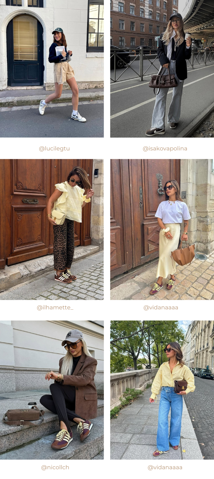 O destaque da vez são os tênis esportivos, com uma pegada mais chunky e uma vibe bem sportswear, como o SL 72 da Adidas e o Cortez da Nike.